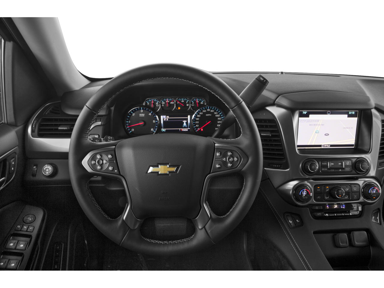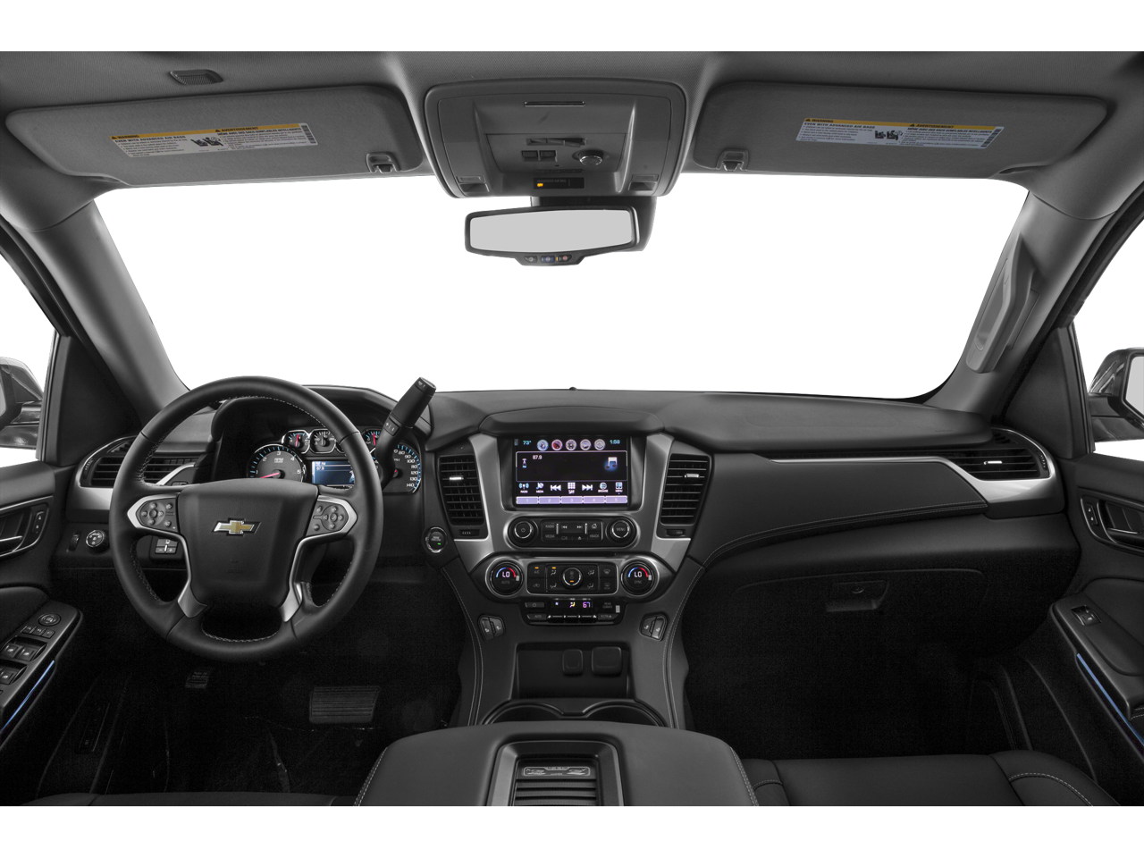 Tahoe LT, 4D Sport Utility, EcoTec3 5.3L V8, 6-Speed Automatic Electronic with Overdrive, 4WD, Summit White, Jet Black Leather, 18 x 8.5 Aluminum Wheels, 2nd Row 60/40 Split-Folding Manual Bench, 3rd Row Manual 60/40 Split-Folding Fold Flat Bench, 3rd row seats: split-bench, 5 12-Volt Auxiliary Power Outlets, 9 Speakers, Adjustable pedals, Auto-Dimming Inside Rear-View Mirror, Auto-dimming Rear-View mirror, Automatic temperature control, Bluetooth® For Phone, Bose Premium 9-Speaker System, Brake assist, Driver Inboard & Front Passenger Airbags, Electronic Stability Control, Emergency communication system: OnStar Directions & Connections, Extended-Range Remote Keyless Entry, Exterior Parking Camera Rear, Floor Console, Forward Collision Alert, Front Heated Reclining Bucket Seats, Fully automatic headlights, Garage door transmitter, Heated door mirrors, Heated front seats, Heavy-Duty Rear Locking Differential, Illuminated entry, Lane Departure Warning & Safety Alert Seat, Leather-Appointed Seat Trim, Low tire pressure warning, Memory seat, Memory Settings, Outside temperature display, Power Adjustable Pedals, Power Liftgate, Preferred Equipment Group 1LT, Premium Smooth Ride Suspension Package, Radio: Chevrolet MyLink AM/FM Stereo w/CD Player, Rain sensing wipers, Rear air conditioning, Rear Park Assist w/Audible Warning, Rear window wiper, Remote keyless entry, Security system, Single-Slot CD/MP3 Player, SiriusXM Satellite Radio, Speed-sensing steering, Spoiler, Steering wheel mounted audio controls, Tachometer, Tilt steering wheel, Universal Home Remote, Voltmeter.