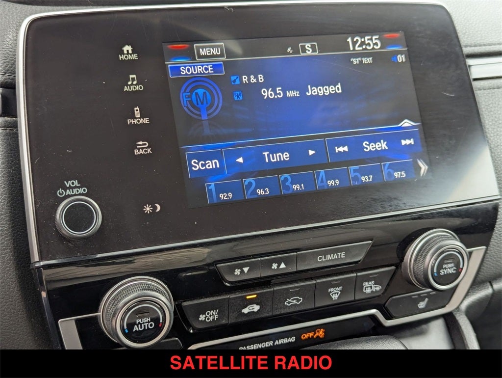 CR-V EX-L, 4D Sport Utility, 1.5L I4 DOHC 16V, CVT, AWD, Lunar Silver Metallic, Gray w/Leather Seat Trim, 18 Alloy Wheels, 4-Wheel Disc Brakes, 8 Speakers, Apple CarPlay/Android Auto, Auto High-beam Headlights, Auto-dimming Rear-View mirror, Automatic temperature control, Blind Spot Information (BSI) System warning, Brake assist, Driver door bin, Dual front side impact airbags, Electronic Stability Control, Exterior Parking Camera Rear, Front fog lights, Front reading lights, Fully automatic headlights, Garage door transmitter: HomeLink, Heated door mirrors, Heated Front Bucket Seats, Illuminated entry, Leather Shift Knob, Low tire pressure warning, Occupant sensing airbag, Outside temperature display, Power driver seat, Power Liftgate, Power moonroof, Power passenger seat, Radio: AM/FM/HD/SiriusXM Audio System, Rear window defroster, Remote keyless entry, Security system, Speed-sensing steering, Speed-Sensitive Wipers, Spoiler, Steering wheel mounted audio controls, Telescoping steering wheel, Tilt steering wheel, Trailer Hitch Ball - 2, Trailer Hitch Harness, Turn signal indicator mirrors.