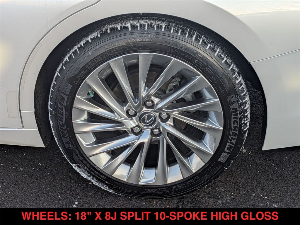 ES 350 Luxury, 4D Sedan, 3.5L V6 DOHC Dual VVT-i 24V, 8-Speed Automatic, FWD, Eminent White Pearl, Flaxen w/Linear Espresso Wood w/NuLuxe Seat Trim (LD), 10 Speakers, 10-Way Power Adjustable Front Seats, 10.2 Head-Up Display (HUD), Acoustic Side Glass, Auto High-beam Headlights, Auto-dimming door mirrors, Automatic temperature control, Brake assist, BSM w/Park Assist & Panoramic View Monitor, Driver Seat Memory, Electrochromic Rear-View Mirror, Electronic Stability Control, Emergency communication system: Lexus Enform w/Safety Connect, Exterior Parking Camera Rear, Fully automatic headlights, Garage door transmitter: HomeLink, Genuine Leather Seat Trim, Genuine wood console insert, Genuine wood dashboard insert, Genuine wood door panel insert, Heated & Ventilated Seats, Heated Leather & Wood Steering Wheel, Heated Side Mirrors w/Memory & Reverse Tilt, ICS w/Rear Pedestrian Detection, Illuminated entry, Lane Change Assist, Leather Shift Knob, Leather steering wheel, Low tire pressure warning, Luxury Package, Navigation System, Outside temperature display, Panoramic Glass Roof, Power door mirrors, Power Tilt/Telescoping Steering Wheel w/Memory, Radio: Lexus Premium Sound System w/10 Speakers, Radio: Navigation w/Mark Levinson Audio, Rain Sensing Wipers, Security system, Speed-sensing steering, Telescoping steering wheel, Touch-Free Power Trunk, Turn signal indicator mirrors, Wheels: 18 x 8J Multi-Spoke Aluminum Alloy, Windshield De-Icer, Wood Trim w/Ambient Lighting.