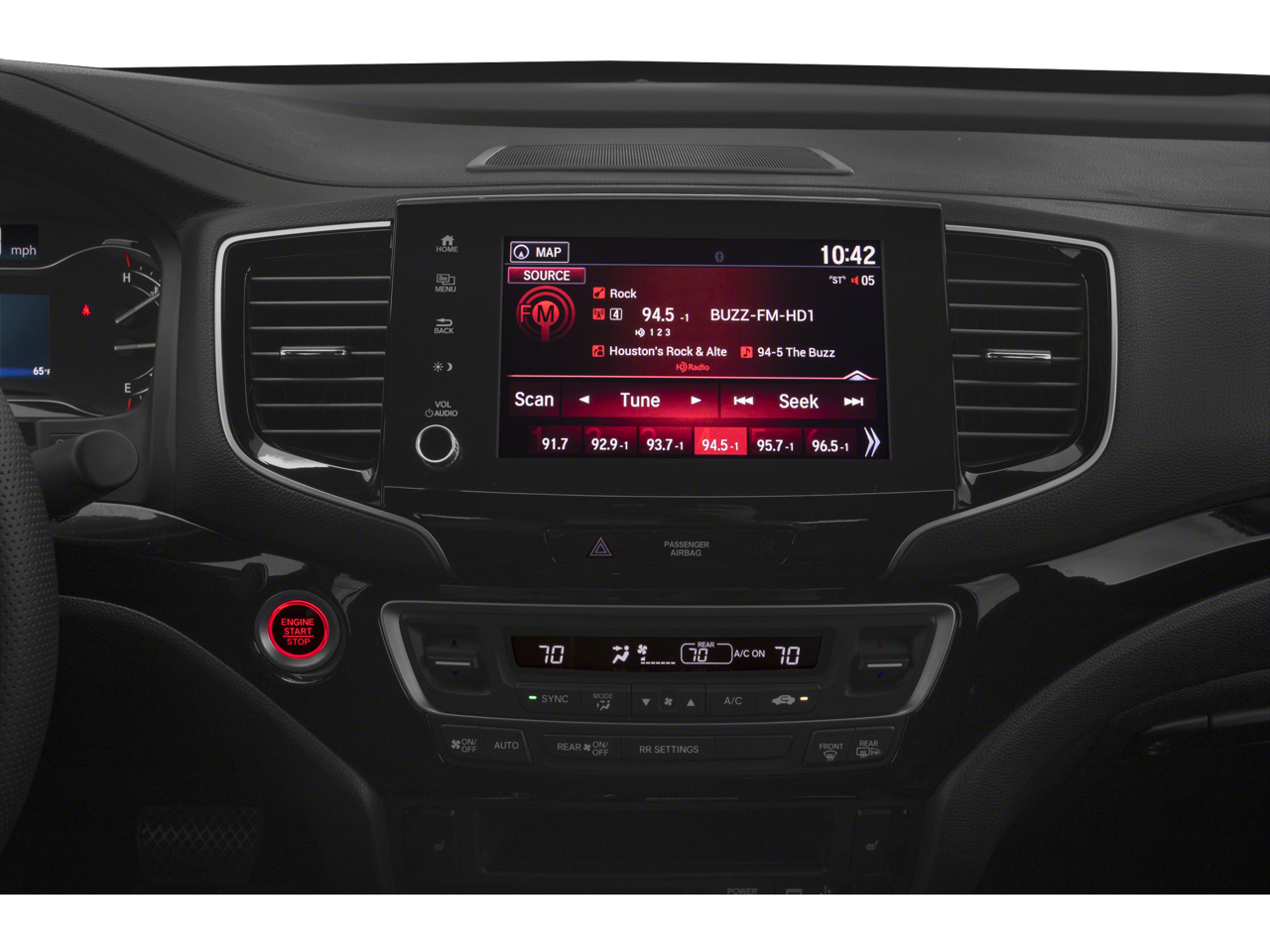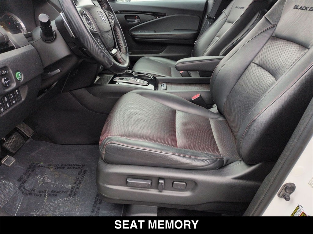 Ridgeline Black Edition, 4D Crew Cab, 3.5L V6 SOHC i-VTEC 24V, 9-Speed Automatic, AWD, Platinum White Pearl, Black w/Leather Seat Trim, 8 Speakers, Apple CarPlay/Android Auto, Auto High-beam Headlights, Auto-dimming Rear-View mirror, Automatic temperature control, Blind Spot Information (BSI) System warning, Bluetooth® Hands-Free Link, Brake assist, Driver's Seat Mounted Armrest, Electronic Stability Control, Exterior Parking Camera Rear, Forward collision: Collision Mitigation Braking System (CMBS) + FCW mitigation, Four wheel independent suspension, Front fog lights, Fully automatic headlights, Garage door transmitter: HomeLink, Heated door mirrors, Heated Front Bucket Seats, Heated steering wheel, Honda Satellite-Linked Navigation System, Illuminated entry, Low tire pressure warning, Navigation system: Honda Satellite-Linked Navigation System, Outside temperature display, Power moonroof, Radio: AM/FM/MP3 Premium Audio System, Rear air conditioning, Rear anti-roll bar, Rear step bumper, Remote keyless entry, Security system, SiriusXM, Speed-sensing steering, Split folding rear seat, Steering wheel mounted audio controls, Tachometer, Telescoping steering wheel, Turn signal indicator mirrors, Wheels: 18 Exclusive Gloss Black Alloy.
