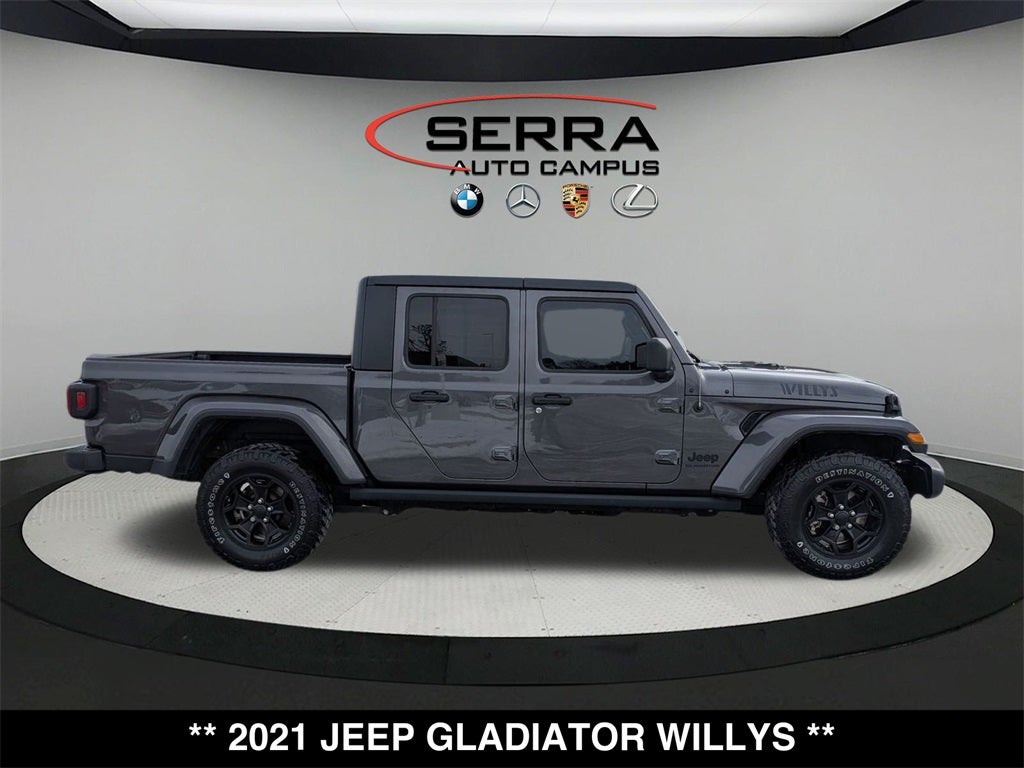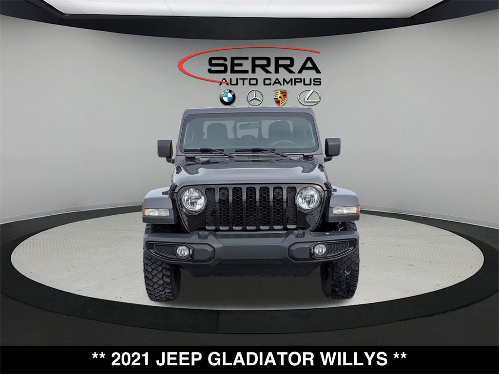 Welcome to the Serra Auto Campus, whether you are looking for a new or pre-owned BMW, Mercedes-Benz or Porsche car, or SUV you will find it here. We have helped many customers from Alma, Ann Arbor, Charlotte, East Lansing, Eaton Rapids, Flint, Grand Blanc, Fenton, Holt, Howell, Jackson, Lansing, Mason, Okemos, Owosso, Mt. Pleasant, Saginaw, Midland, Jackson and Kalamazoo find the BMW, Mercedes-Benz or Porsche of their dreams! Priced below KBB Fair Purchase Price! Odometer is 13967 miles below market average! Granite Crystal Metallic Clearcoat 2021 Jeep Gladiator 4D Crew Cab Willys 4WD 8-Speed Automatic 3.6L V6 24V VVT
