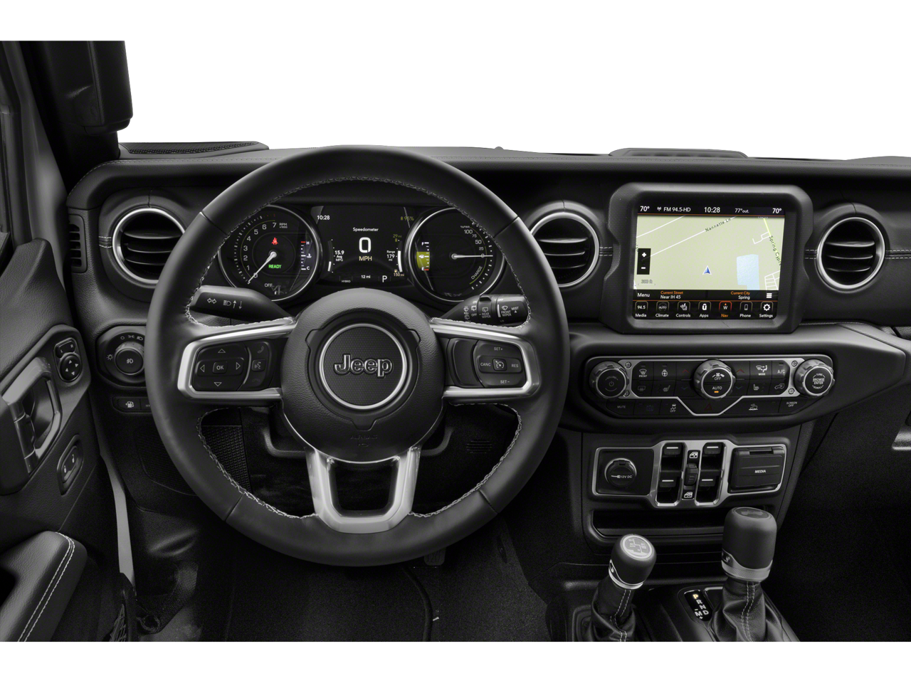 Wrangler Unlimited Rubicon 4xe, 4D Sport Utility, 2.0L I4 DOHC, 8-Speed Automatic, 4WD, Bright White Clearcoat, Black Leather, 7 & 4 Pin Wiring Harness, 700 Amp Maintenance Free Battery, 9 Speakers, Apple CarPlay/Android Auto, Auto-dimming Rear-View mirror, Automatic temperature control, Auxiliary Switches, Blind Spot & Cross Path Detection, Body Color Fender Flares, Brake assist, Class II Receiver Hitch, Cold Weather Group, Electronic Stability Control, Emergency communication system: SiriusXM Guardian, Front Bucket Seats, Front fog lights, Fully automatic headlights, Garage door transmitter, Glass Window Material, Heated door mirrors, Heated Front Seats, Heated Steering Wheel, Illuminated entry, Integrated roll-over protection, Leather steering wheel, Low tire pressure warning, MOPAR All-Weather Floor Mats (DISC), Navigation System, Outside temperature display, ParkSense Rear Park Assist System, ParkView Rear Back-Up Camera, Performance Suspension, Power Top Quarter Window Storage Bag, Premium Cloth Low-Back Bucket Seats, Quick Order Package 29V, Radio: Uconnect 4C Nav w/8.4 Display, Rear Window Defroster, Rear Window Wiper/Washer, Remote keyless entry, Remote Proximity Keyless Entry, Remote Start System, Removable Rear Quarter Windows, Safety Group, Security system, Sky 1-Touch Power Top, Steering wheel mounted audio controls, Telescoping steering wheel, Trailer Tow & HD Electrical Group, Wheels: 17 x 7.5 Machined/Painted Black.