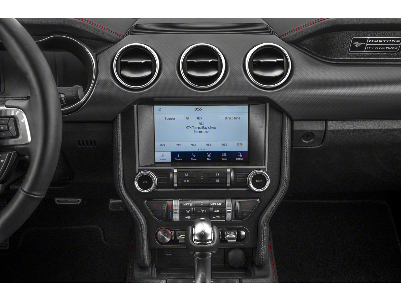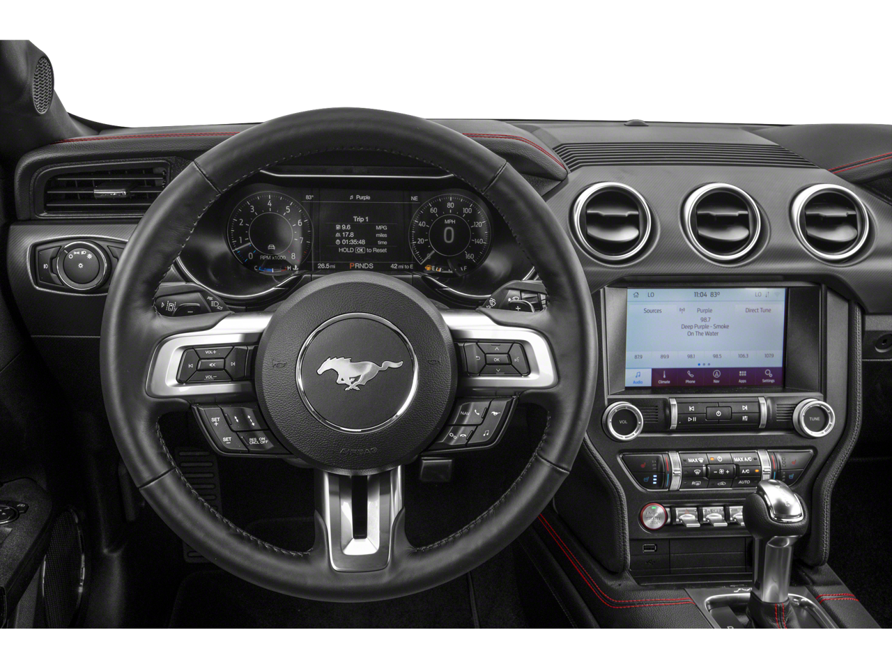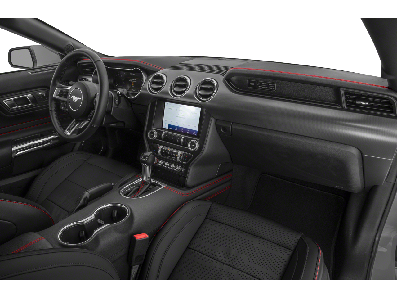 Inside, the Mustang GT Premium surrounds you in a cabin of uncompromising quality and attention to detail. The 12-inch digital instrument cluster puts vital information at your fingertips, while the Voice-Activated Navigation System and B&O premium audio system ensure you stay connected and entertained. Leather-trimmed bucket seats with color accents provide exceptional comfort and support, elevating your driving experience.