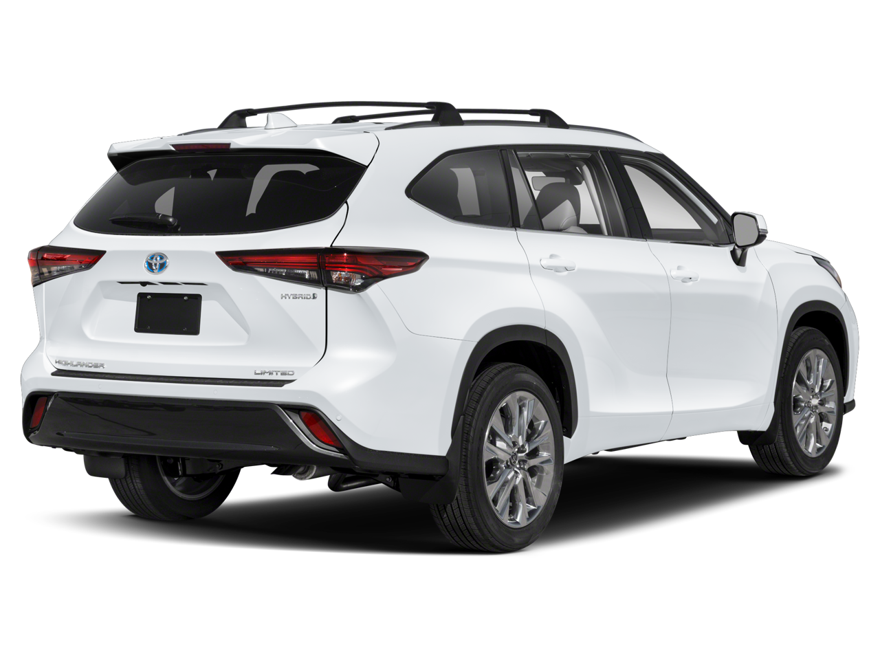 Highlander Hybrid Limited, 4D Sport Utility, 2.5L I4 PDI Hybrid DOHC 16V LEV3-SULEV30, eCVT, AWD, Black w/Leather Seat Trim, 11 Speakers, 20 Alloy Wheels, 3rd row seats: split-bench, Apple CarPlay/Android Auto, Auto High-beam Headlights, Auto-dimming Rear-View mirror, Automatic temperature control, Brake assist, Electronic Stability Control, Emergency communication system: Safety Connect (up to 10-year trial subscription), Exterior Parking Camera Rear, Front fog lights, Fully automatic headlights, Garage door transmitter: HomeLink, Heated door mirrors, Heated Front Bucket Seats, Heated front seats, Heated steering wheel, Illuminated entry, Leather Shift Knob, Leather steering wheel, Low tire pressure warning, Navigation system: Drive Connect Cloud Navigation (1-year trial subscription), Outside temperature display, Panoramic View Camera, Panoramic View Monitor, Power Liftgate, Power moonroof, Radio: 12.3 Toyota Audio Multimedia w/JBL Premium, Rear air conditioning, Rear window wiper, Reclining 3rd row seat, Remote keyless entry, Security system, Speed-sensing steering, Split folding rear seat, Spoiler, Steering wheel mounted audio controls, Telescoping steering wheel, Turn signal indicator mirrors, Variably intermittent wipers, Ventilated front seats.