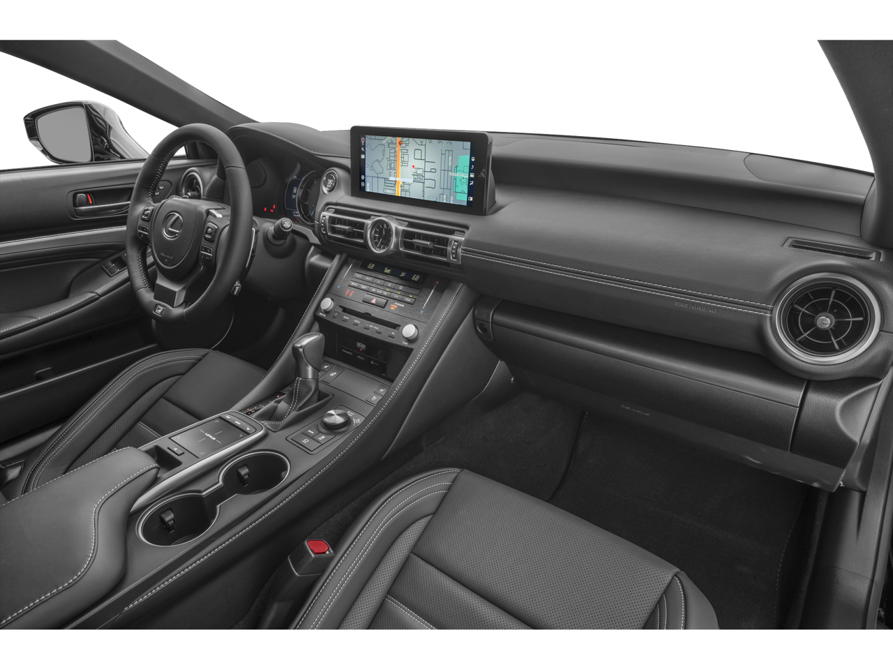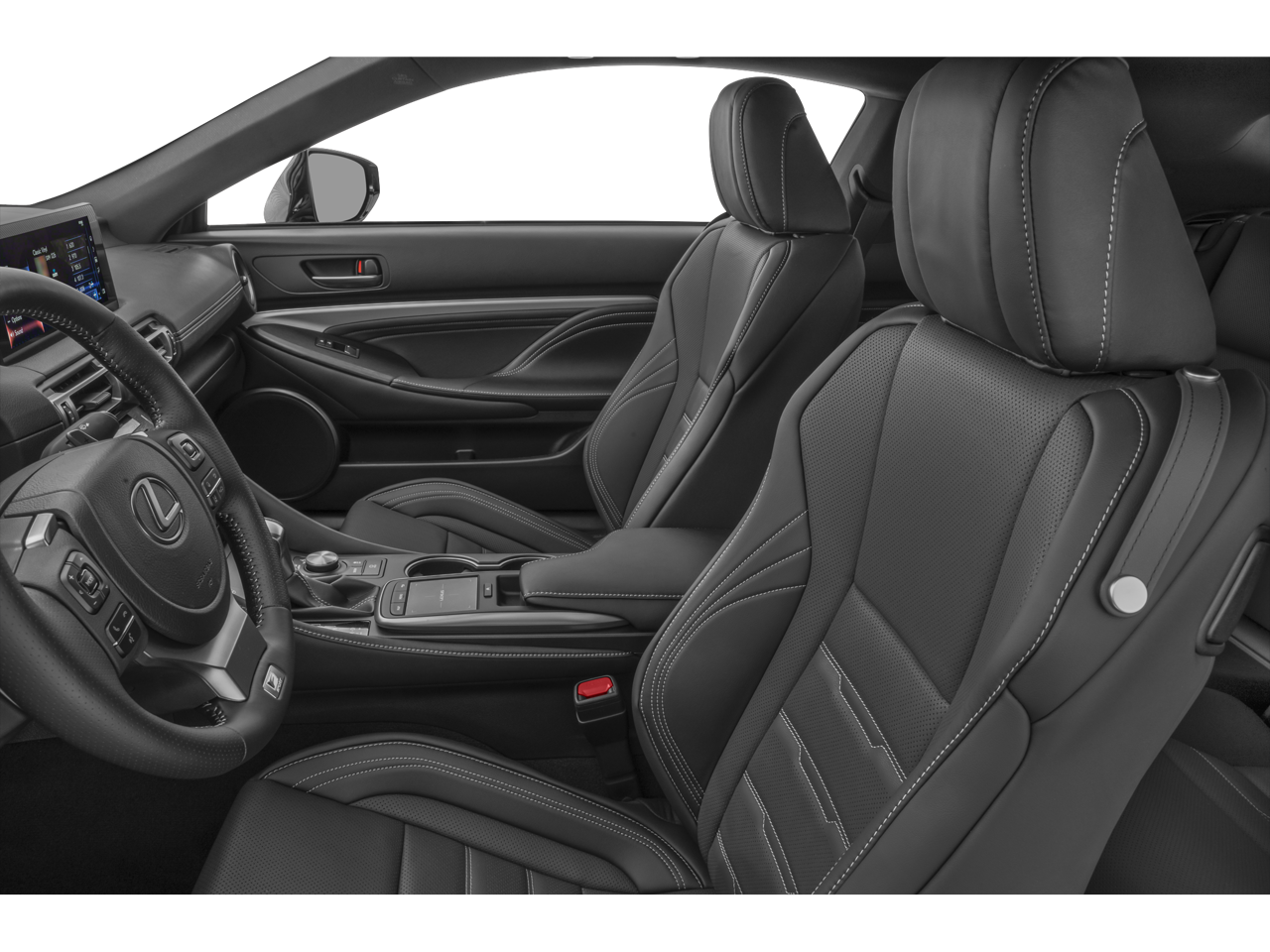 RC 350 F Sport, 2D Coupe, 3.5L V6 DOHC 24V, 6-Speed Automatic, AWD, Incognito, White Nuluxe Dark Gra Artificial Leather, 10 Speakers, Accessory Package, Adaptive suspension, All Weather Package, Alloy Wheel Locks, Apple CarPlay/Android Auto, Auto High-beam Headlights, Auto-dimming door mirrors, Auto-dimming Rear-View mirror, Automatic temperature control, Brake assist, Cargo Net, Carpet Trunk Mat, Electronic Stability Control, Emergency communication system: Safety Connect (3-year trial), Exterior Parking Camera Rear, F SPORT Heated Steering Wheel w/Paddle Shifters, F SPORT NuLuxe Seat Trim, F SPORT Package, Front & Rear Intuitive Parking Assist, Garage door transmitter: HomeLink, Headlamp Washers, Heated door mirrors, Heated front seats, Heated/Ventilated Power F SPORT Front Seats, Illuminated Door Sills, Illuminated entry, Key Gloves, Leather Shift Knob, Leather steering wheel, Lexus Enform Destination Assist, Lexus Enform Enform App Suite 2.0, Low tire pressure warning, Mark Levinson Premium Surround System w/DVD, Moonroof w/Power Tilt/Slide, Navigation System, Navigation System w/Mark Levinson Audio Package, Outside temperature display, Remote keyless entry, Security system, Speed-sensing steering, Steering wheel mounted audio controls, Telescoping steering wheel, Triple-Beam LED Headlamps, Turn signal indicator mirrors, Wheels: 19 Split-5-Spoke Alloy F SPORT, Windshield Wiper De-Icer.