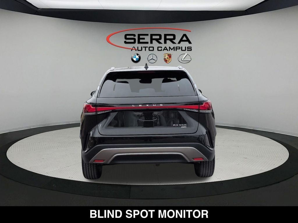 RX 350 Premium, 4D Sport Utility, 2.4L I4 Turbo, 8-Speed Automatic, AWD, Caviar, Black Nuluxe Black Op Artificial Leather, 12 Speakers, 19 5-Spoke Alloy Wheels, 8-Way Power Driver & Front Passenger Seat Adjusters, Accessory Package, All-Weather Cargo Tray, All-Weather Floor Liners, Anti-whiplash front head restraints, Auto High-beam Headlights, Auto tilt-away steering wheel, Auto-dimming door mirrors, Auto-dimming Rear-View mirror, Automatic temperature control, Brake assist, Convenience Package, Door Edge Film by 3M, Electrochromic Heated Outside Rearview Mirror, Electronic Stability Control, Emergency communication system: Safety Connect (10-year trial), Exterior Parking Camera Rear, Front fog lights, Fully automatic headlights, Garage door transmitter: HomeLink, Heated & Ventilated Front Bucket Seats, Heated door mirrors, Illuminated Door Sills, Illuminated entry, Lane Change Assist w/Lane Keeping Assist System, Leather Shift Knob, Leather steering wheel, Low tire pressure warning, Navigation System, Outside temperature display, Power Liftgate, Power moonroof, Premium Package, Radio: Lexus Interface w/14 HD Touchscreen Display, Rain sensing wipers, Rear air conditioning, Rear window wiper, Remote keyless entry, Security system, Side Puddle Lamp, Spoiler, Steering wheel memory, Steering wheel mounted audio controls, Turn signal indicator mirrors, Ventilated front seats, Wireless Apple CarPlay/Wireless Android Auto.